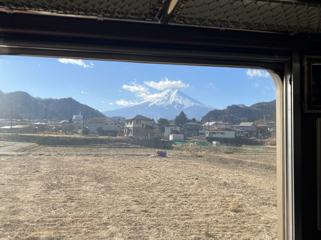 富士急行線乗車時も車内アナウンスがあり、富士山をカメラにおさめることができました。