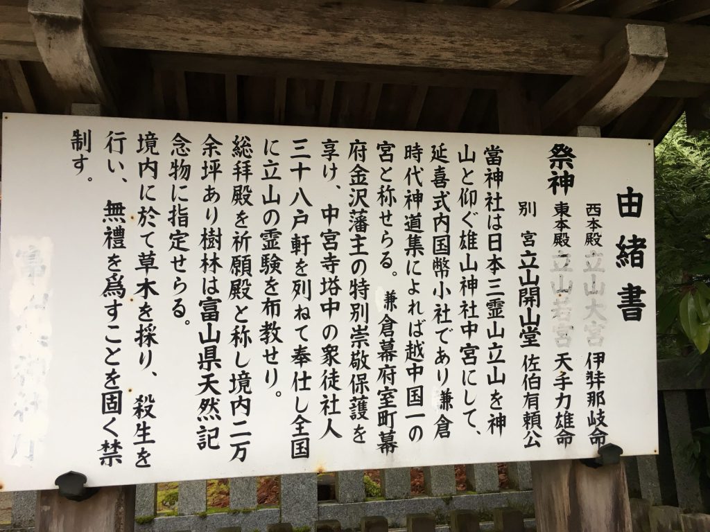 『立山大権現祈願殿』という表示が神仏習合の時代の名残を感じさせます。