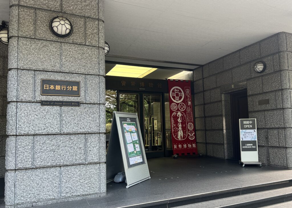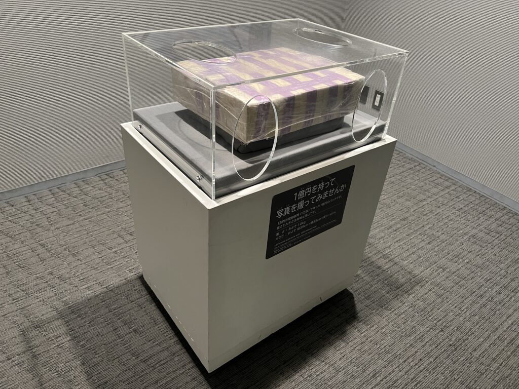 日本銀行前には貨幣博物館があります。中では1億円の模造紙幣が展示されていました。