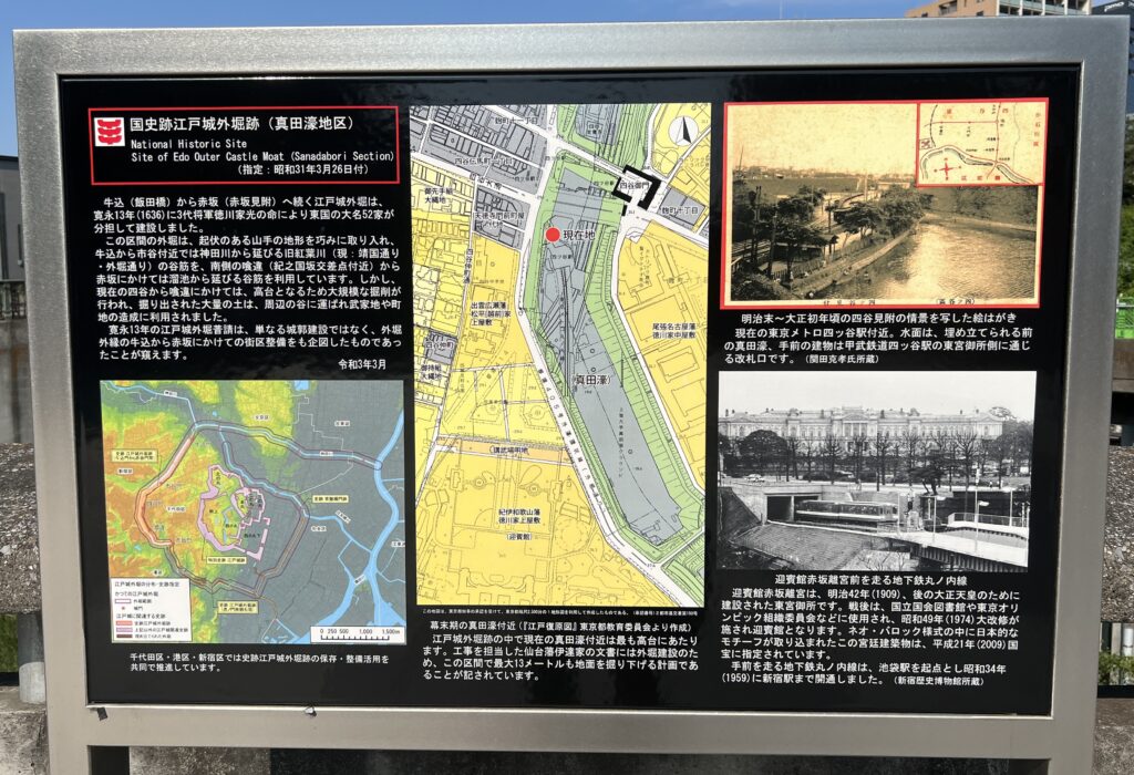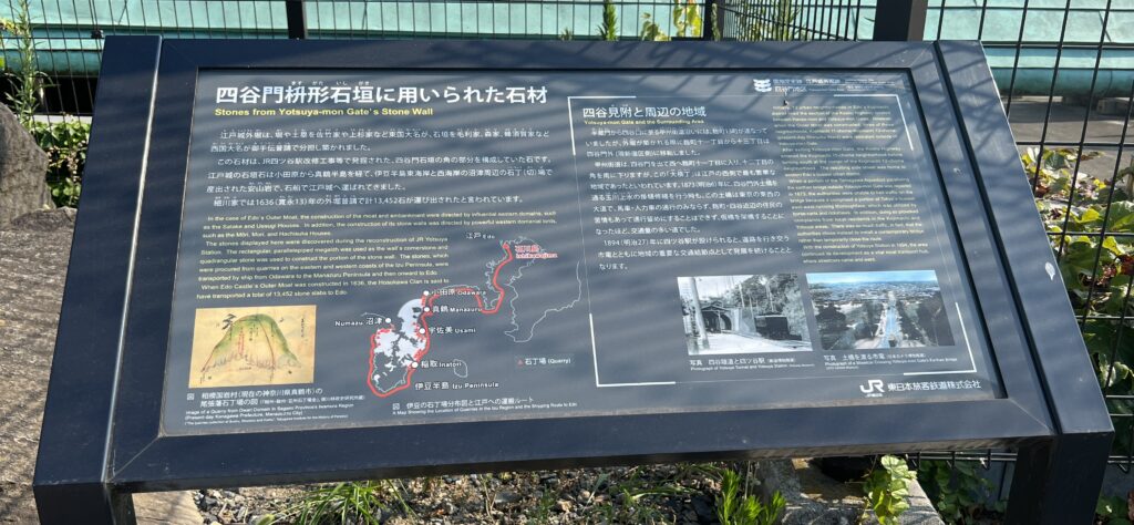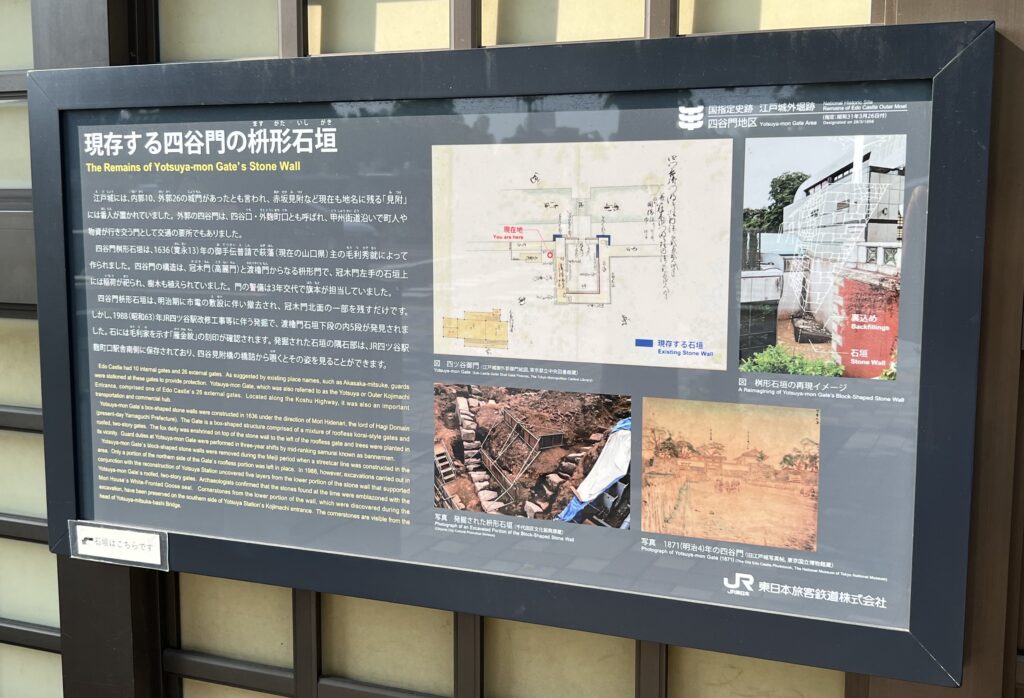 JR四ツ谷駅改札外には「江戸城外堀史跡展示広場」があります。