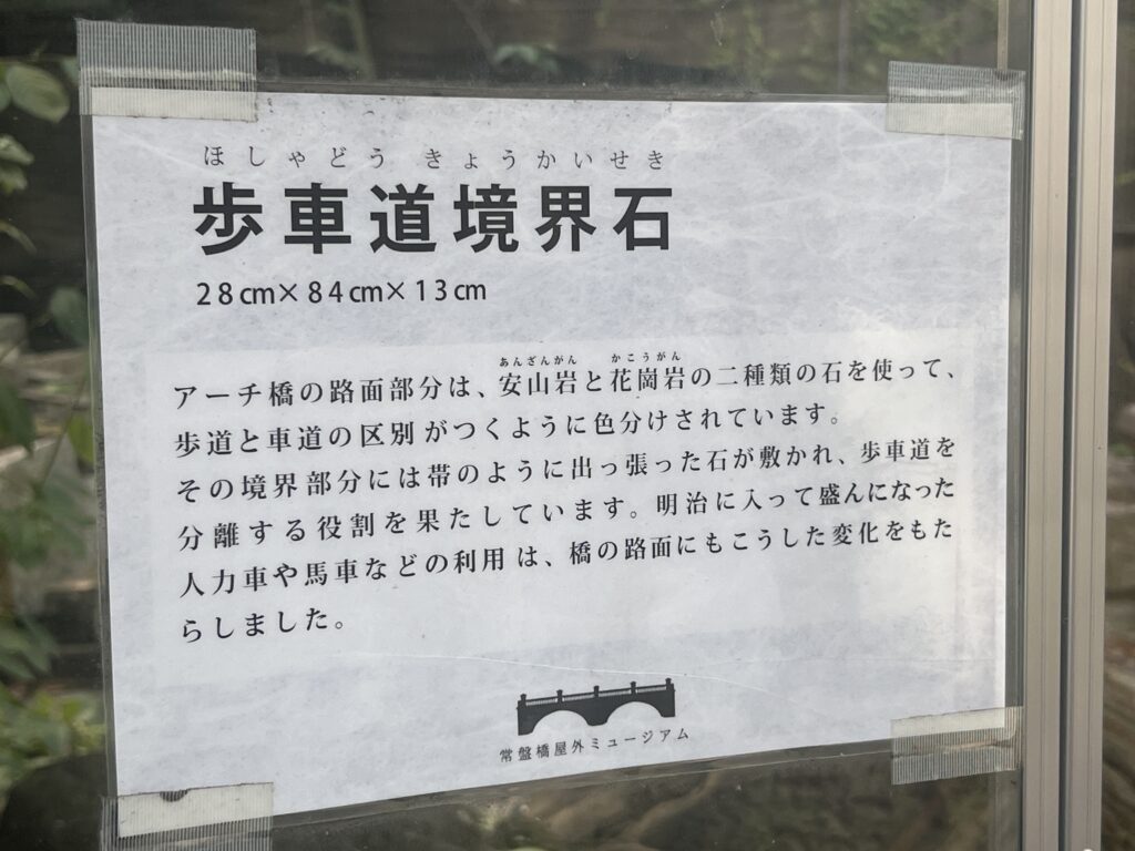 アーチ橋の路面部分に安山岩と花崗岩(かこうがん)の二種類の石を使って、