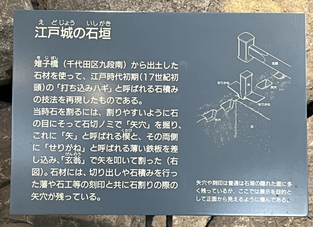 雉子橋(きじばし:千代田区九段南)から出土した石材を使って、