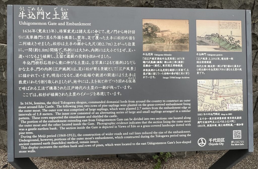 現在土塁の一部は地中に残っており、JR飯田橋駅前には、
