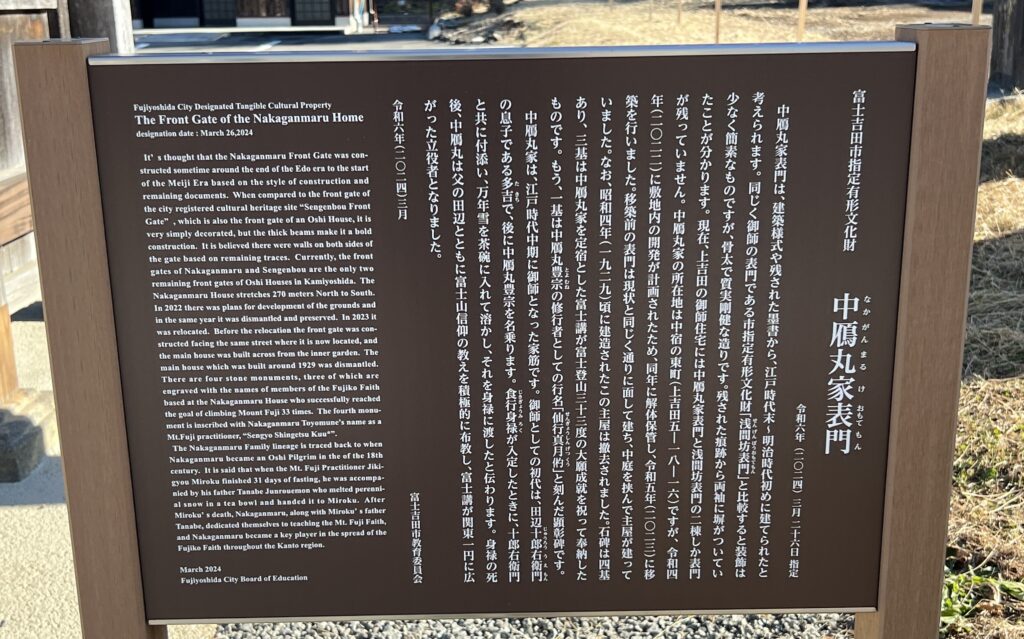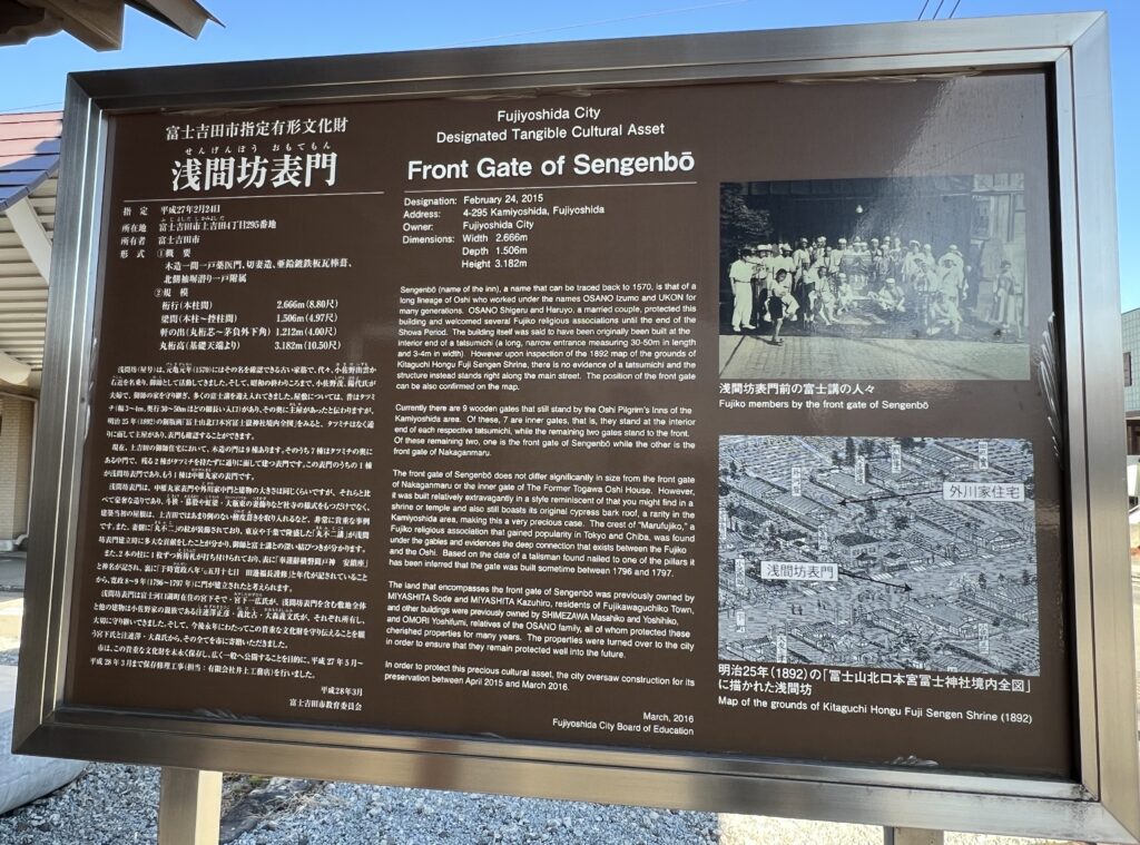 現在上吉田の御師住宅には、中雁丸家表門と浅間坊表門の二棟しか、表門は残っていません。