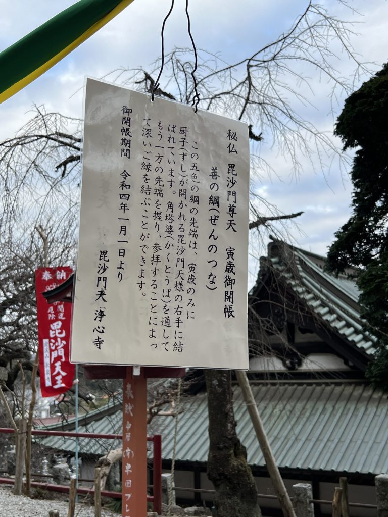 毘沙門天像の右手に結ばれている善の綱を、