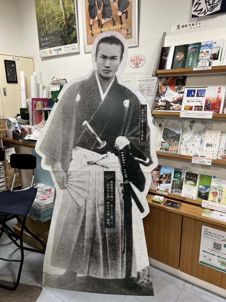 振武軍参謀の渋沢平九郎の看板は、飯能駅の観光案内所『ぷらっと飯能』の中にあります。