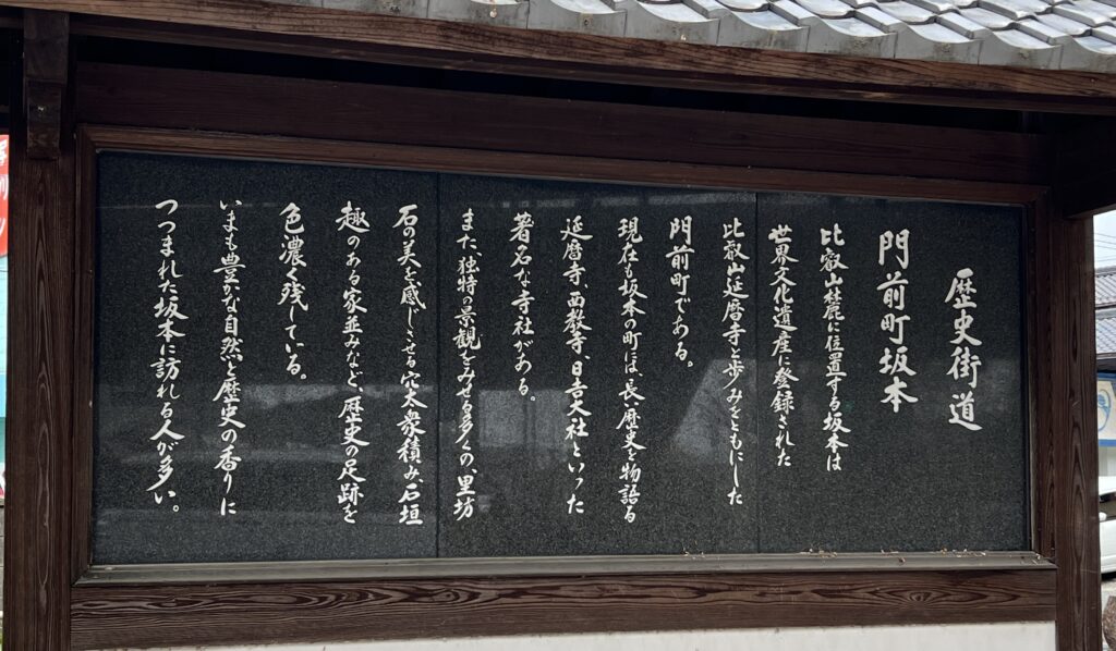 坂本では、比叡山延暦寺の里坊(さとぼう)のみならず、街角の神社や古い民家の石塀などに、