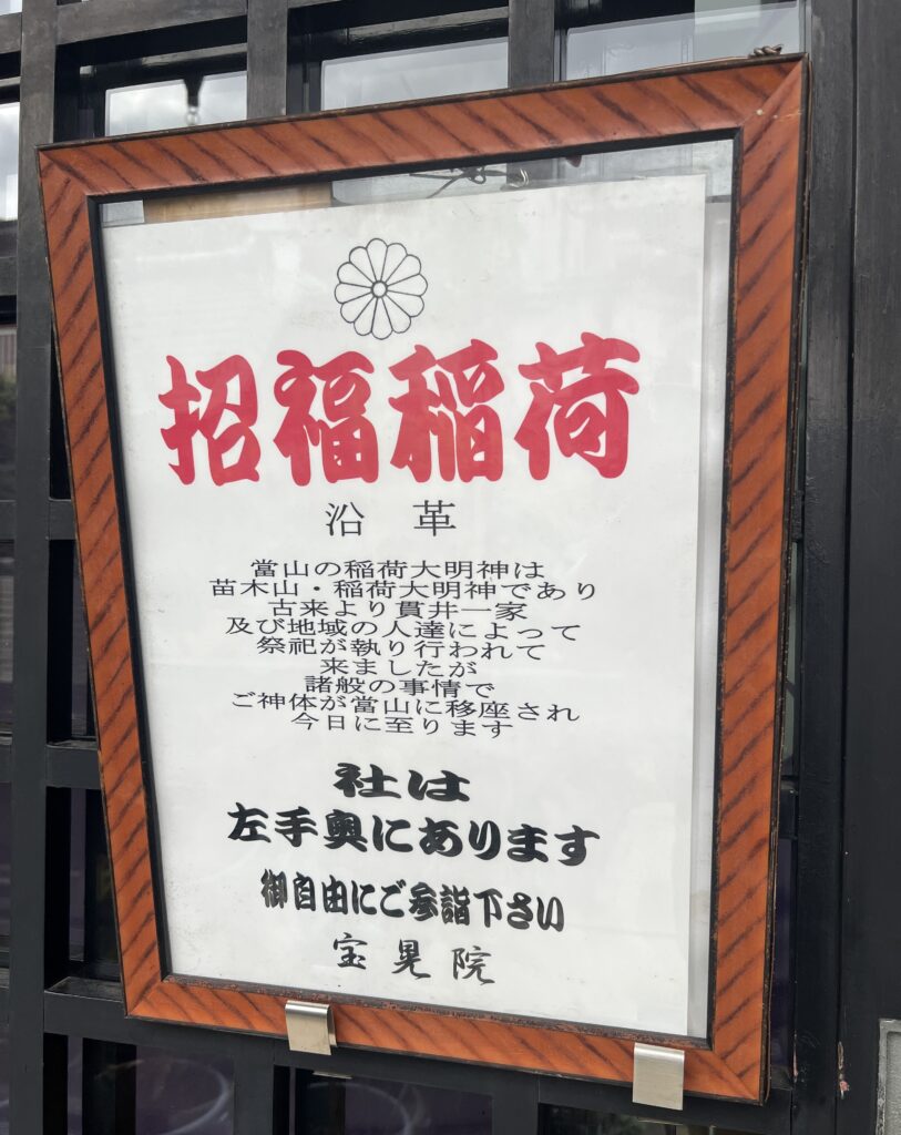 本堂裏には招福稲荷があります。古来より地域の人達によって祭祀が執り行われていました。