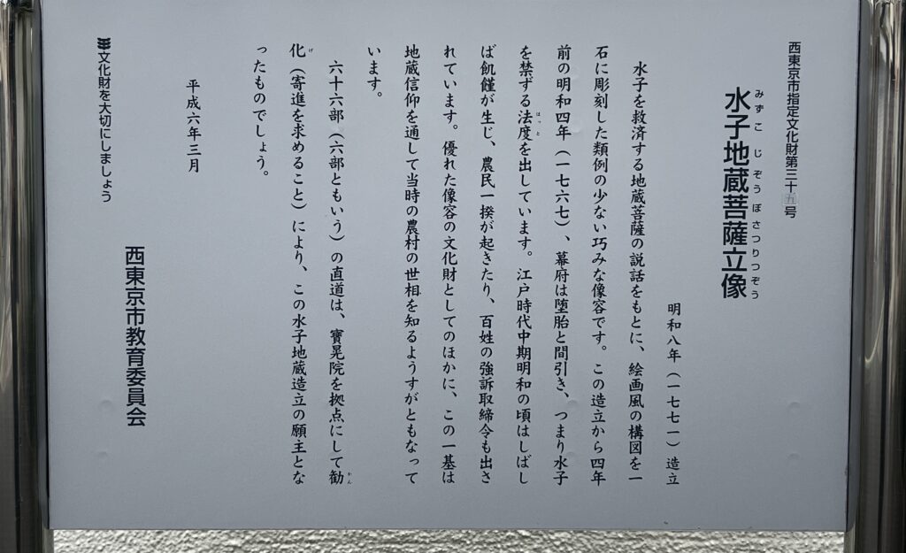 横山道(鎌倉街道)筋の保谷四軒寺(如意輪寺・宝樹院・現在は東禅寺・宝晃院)のひとつです。