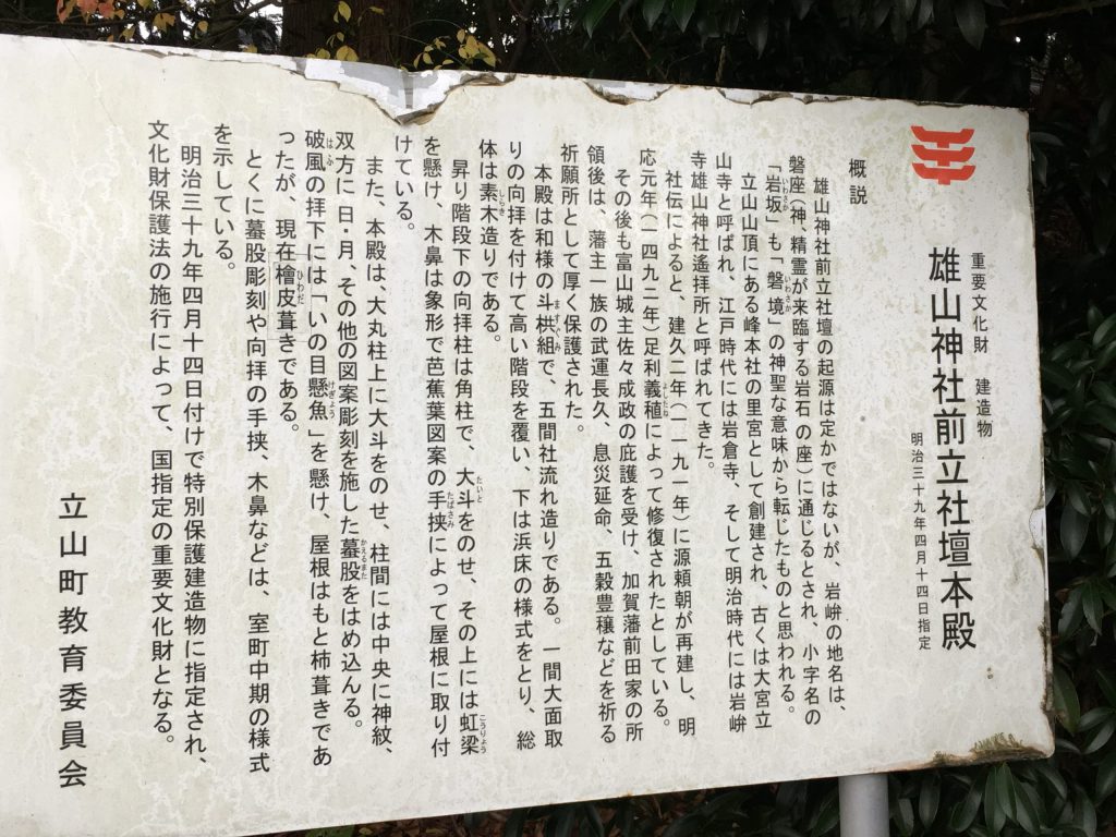 前立社檀(まえたてしゃだん):岩峅寺雄山神社(いわくらじおやまじんじゃ)