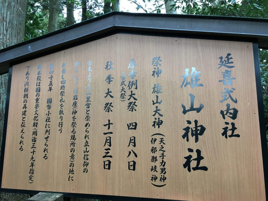 立山を御神体とした雄山神社は、『峰本社』『中宮祈願殿(芦峅寺雄山神社)』『前立社檀(岩峅寺雄山神社)』の三社で成り立っています。