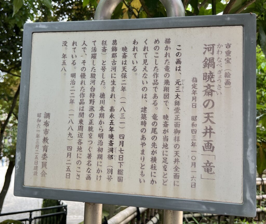 元三大師堂には河鍋暁斎(かわなべぎょうさい)の天井画「竜」が描かれています。