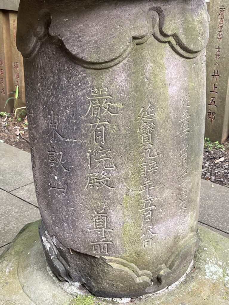 寛永寺の厳有院殿(江戸幕府四代将軍徳川家綱)の霊廟前にあった燈籠がありました。