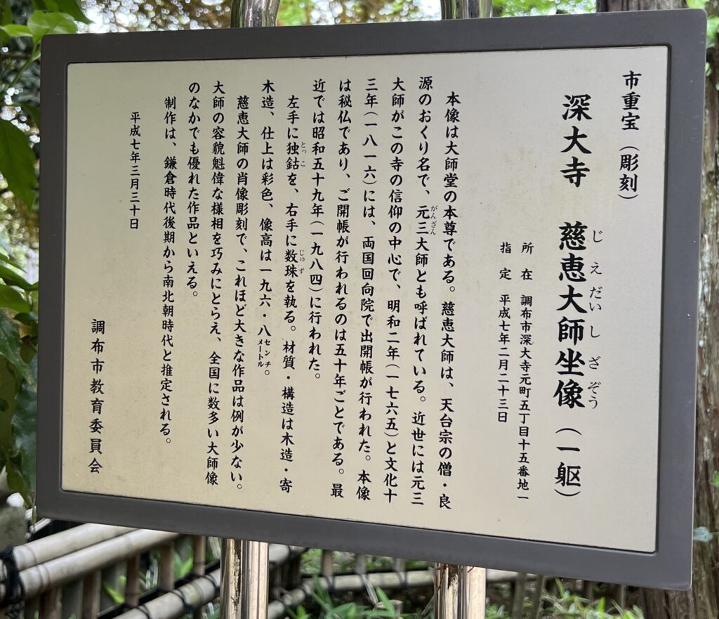 慈覚大師円仁が自ら刻まれたと伝えられるもので、翌年深大寺に寄進されました。