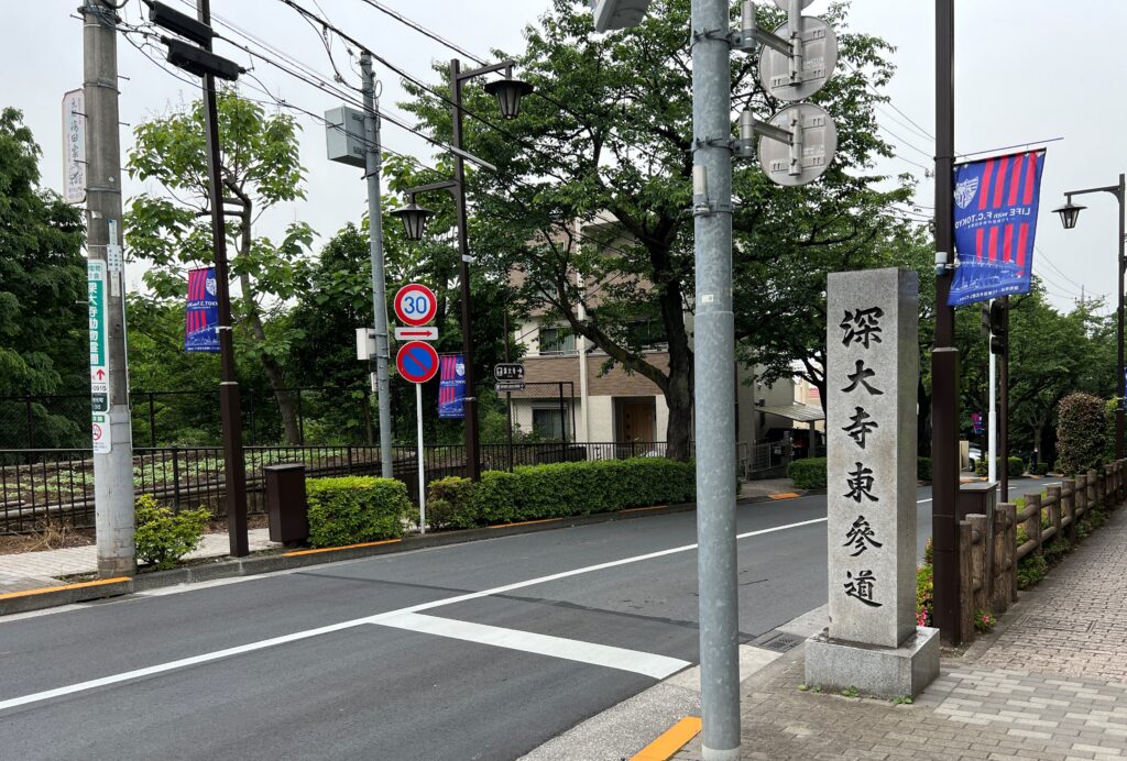 調布市立深大寺小学校のそばに深大寺東参道の石碑があります。