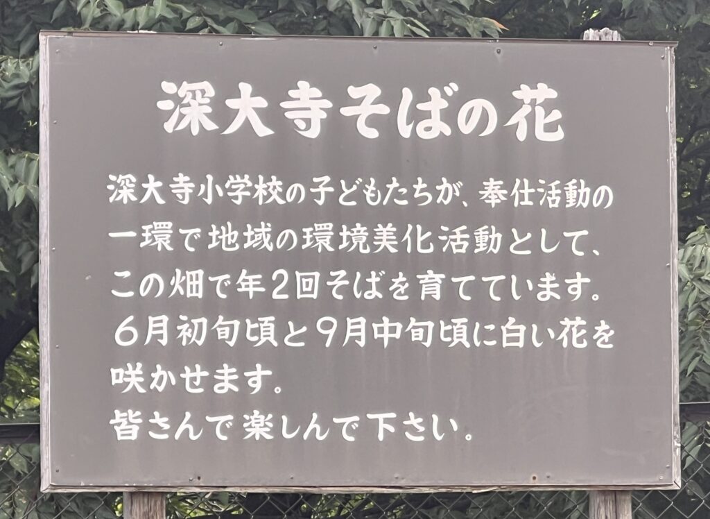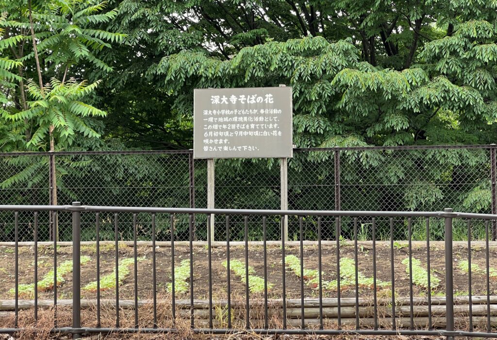 石碑のそばには、深大寺小学校の子どもたちが育てているそば畑がありました。