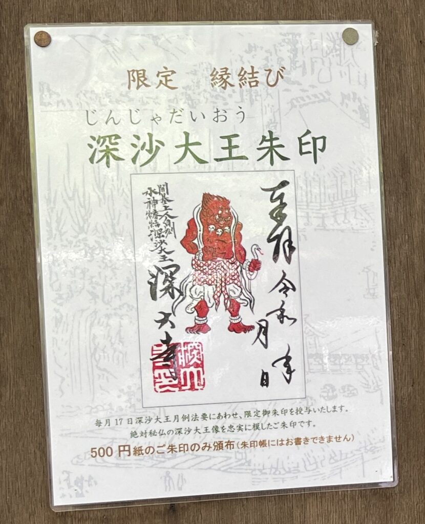 毎月17日の深沙大王月例法要に合わせ、限定ご朱印が授与されます。