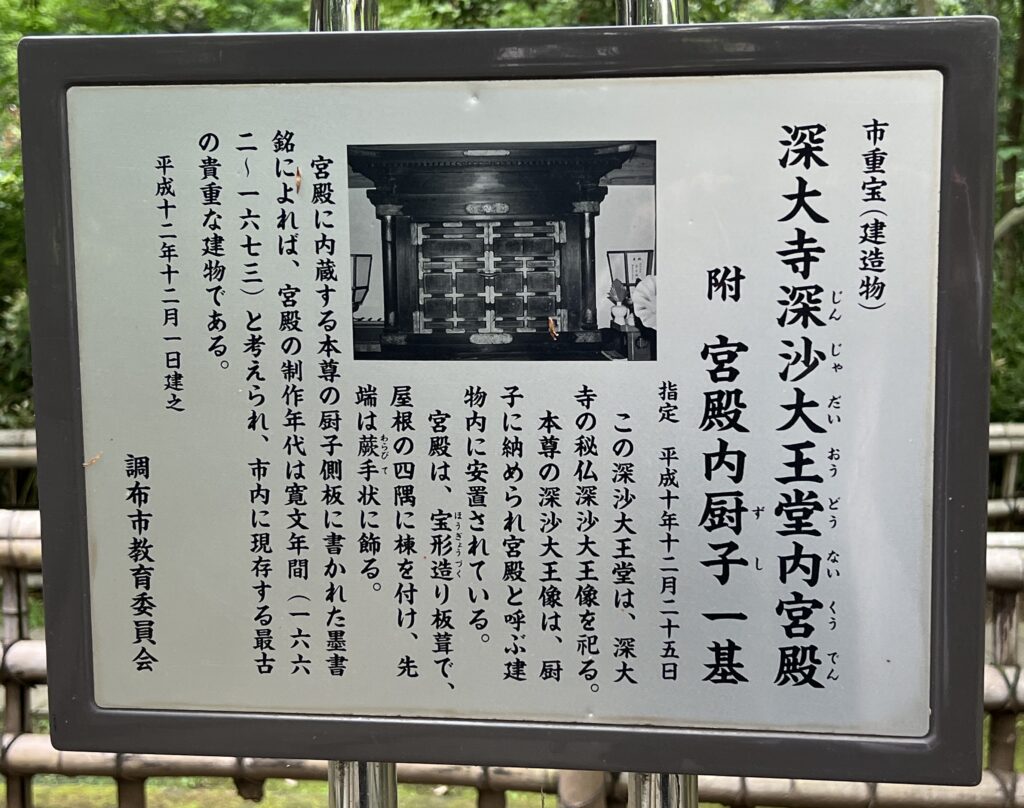 深大寺の秘仏の深沙大王像が厨子に納められ宮殿と呼ぶ建物内に祀られています。