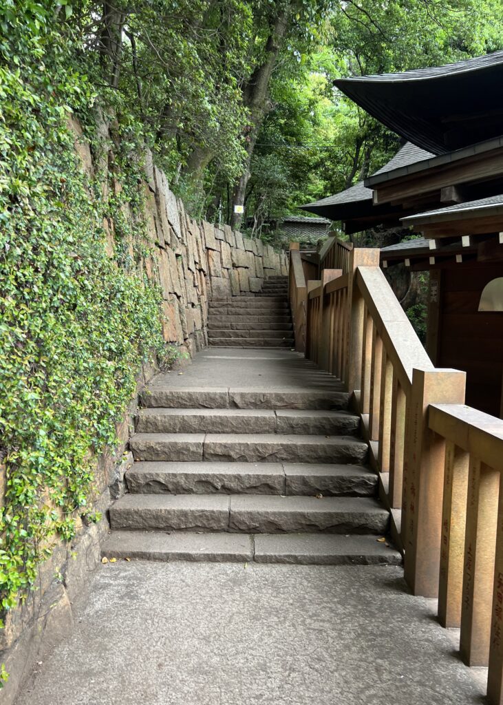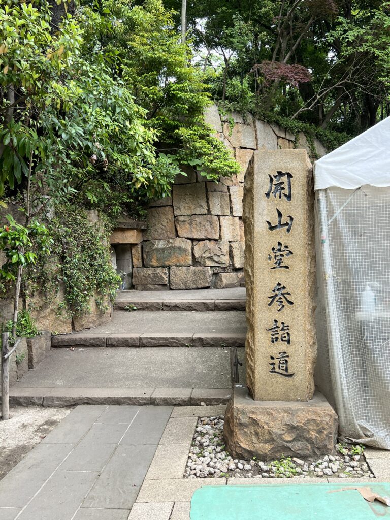 東参道から坂を下りると途中に不動堂があります。明治十七年に再建されました。