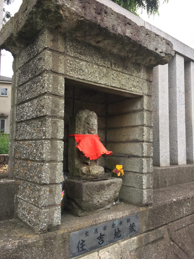 神社のそばを走る保谷志木線沿いに、交通安全祈願の住吉地蔵がありました。