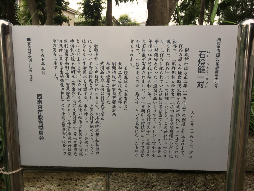 元和八年(1622年)に上保谷の尉殿権現と正保三年(1646年)に田無の尉殿権現(田無神社)に、