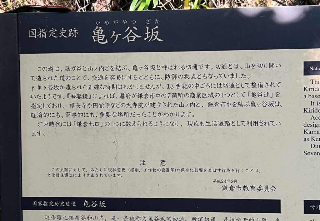 亀ヶ谷坂は扇ガ谷と山ノ内を結ぶ切通です。