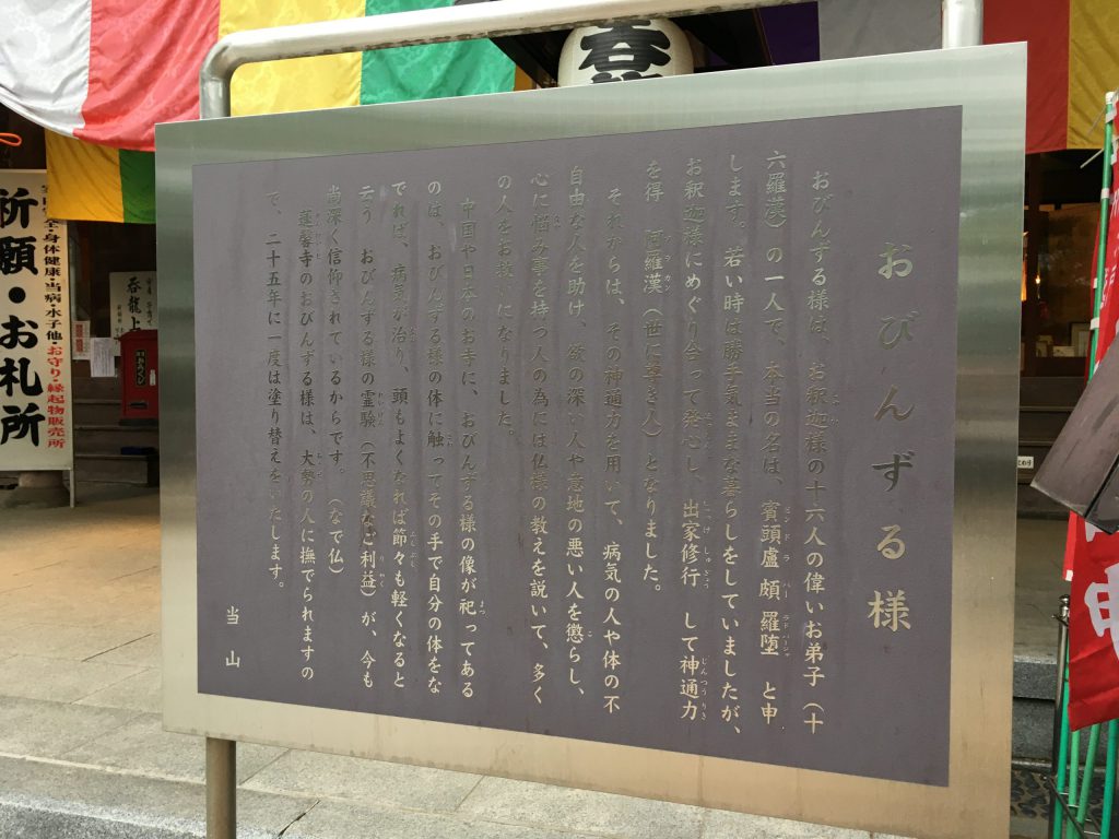 おびんずる様の体に触って、その手で自分の体をなでると病気が治るという霊験があります。