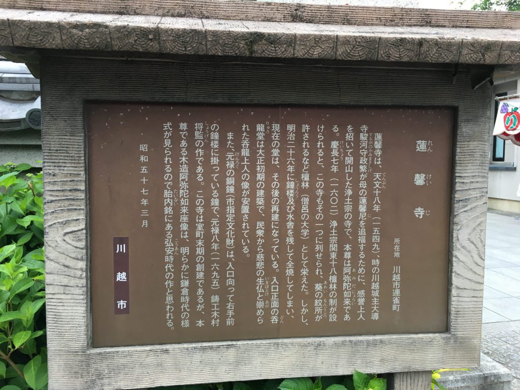 河越夜戦後の天文十八年(1549年)に、河越城主の大道寺政繁の母親・蓮馨によって開基、