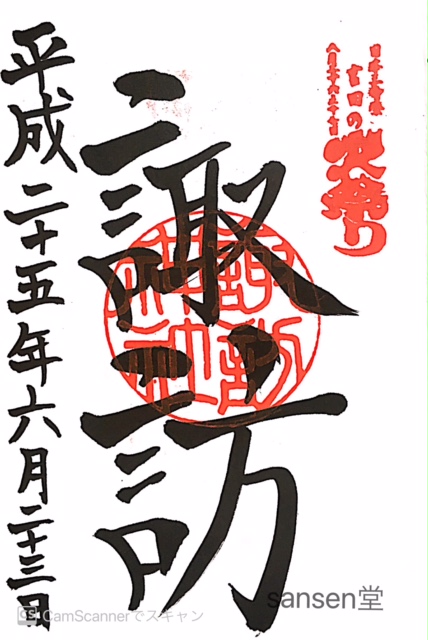平成二十五年拝受:諏訪神社・ご朱印