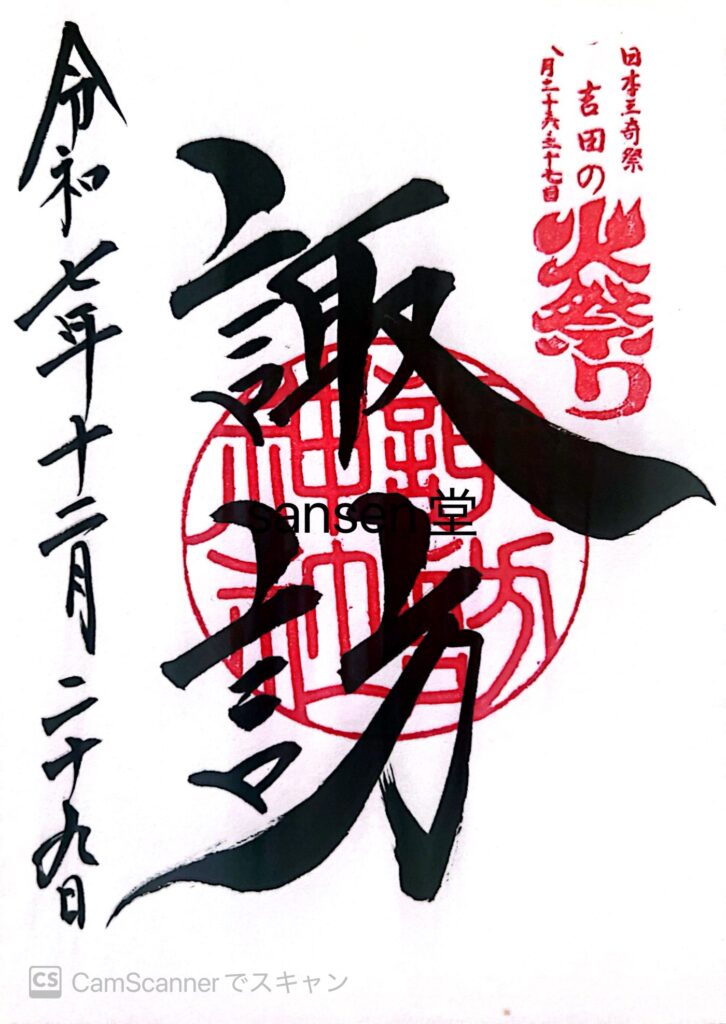 右上の印にある『吉田の火祭り』とは、諏訪神社の祭礼で、