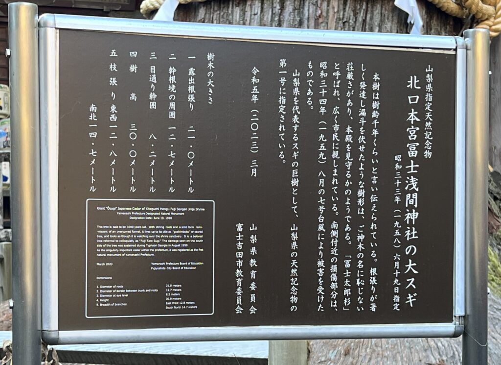 「富士夫婦桧」と呼ばれています。樹高約三十メートルです。