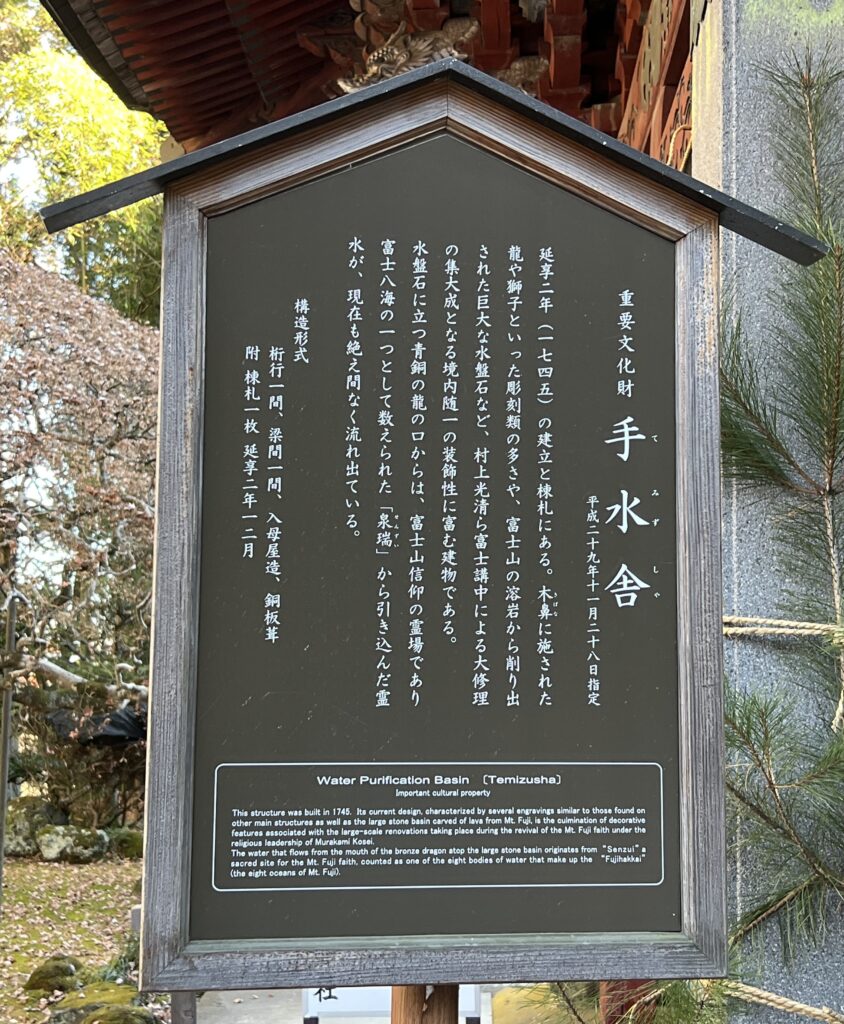 延享二年(1745年)建立されました。富士山の溶岩から削り出された巨大な水盤石など、