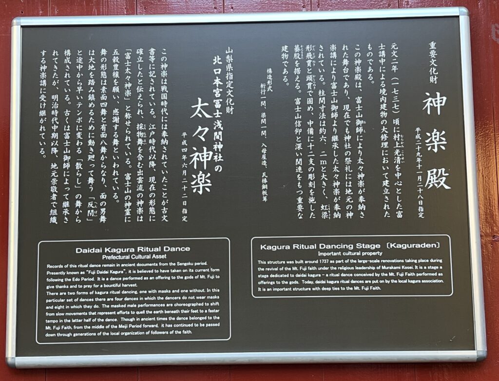 富士山御師により太々神楽奉納された舞台で、