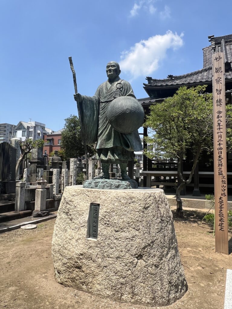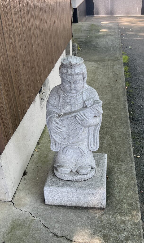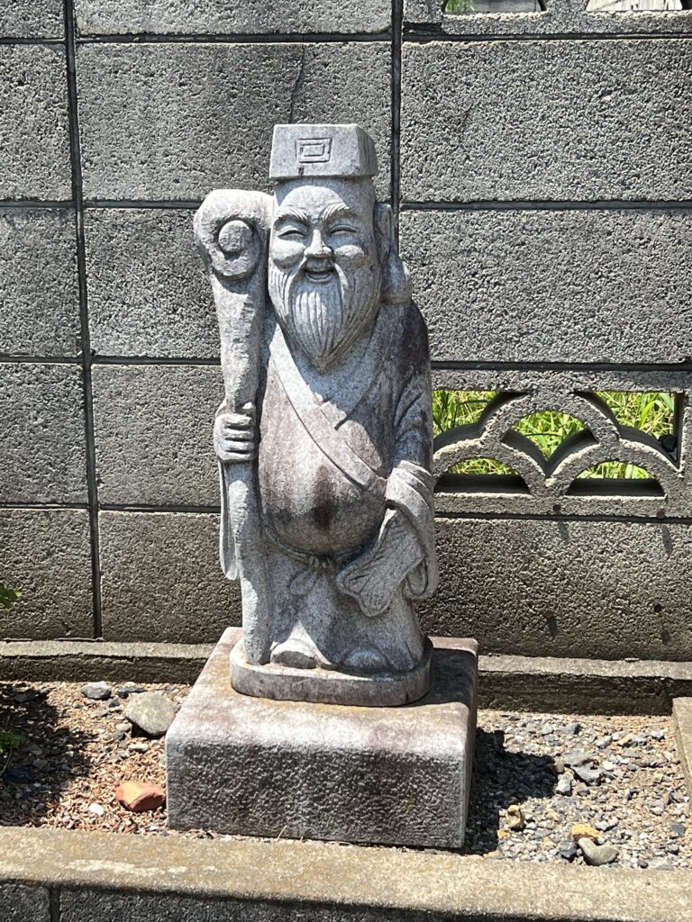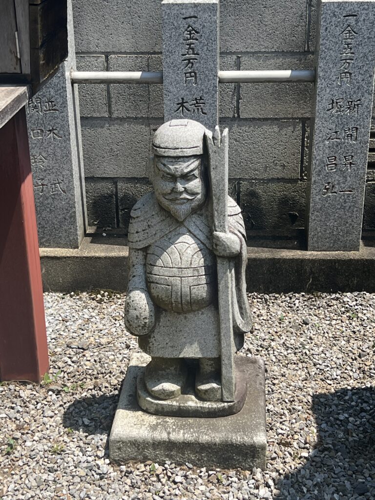 所在地:古河市本町2-2-14。境内には毘沙門天の石像が置かれていました。