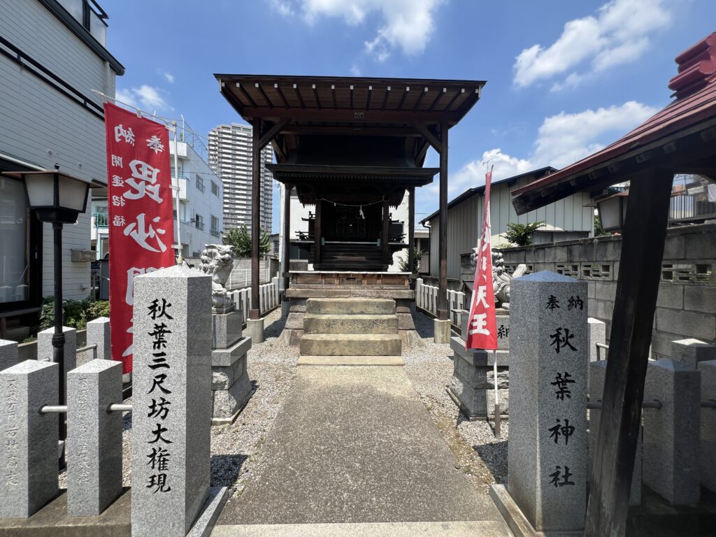 火伏せの神として祀られています。現在の社殿は、昭和二年に再建されました。