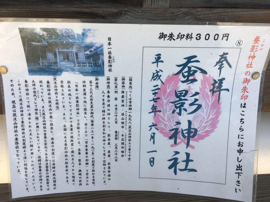 筑波山神社でご朱印を頂いた際に蚕影神社の存在を知りました。