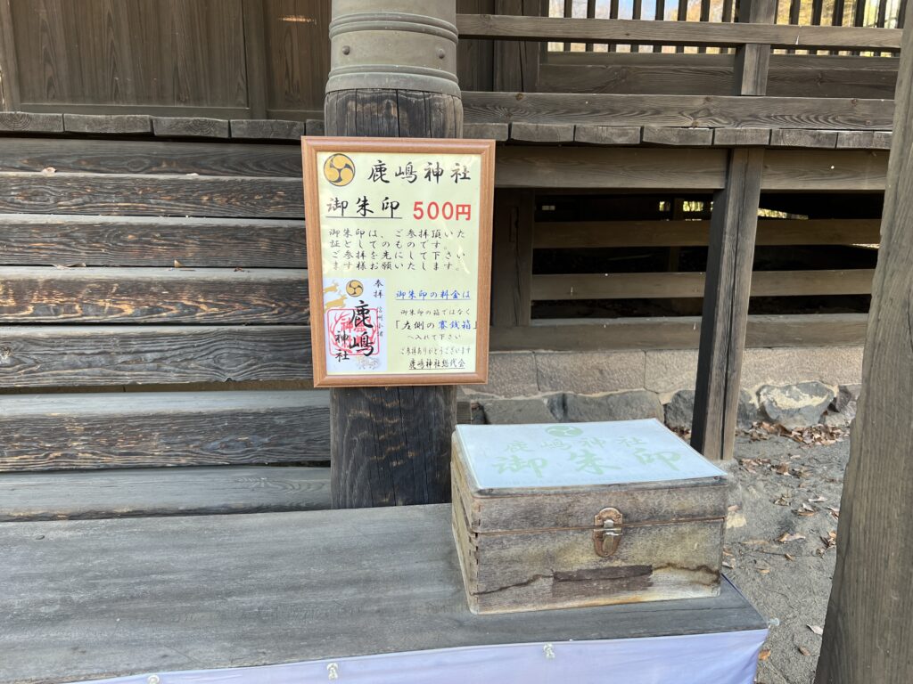 境内は無人で、社殿前には書置きのご朱印箱が置かれていました。
