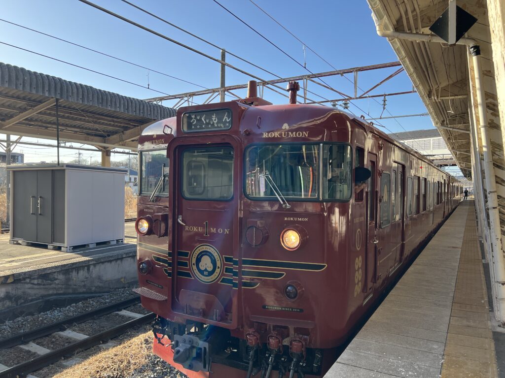 小諸駅ではしなの鉄道の観光列車『ろくもん』が停車していました。
