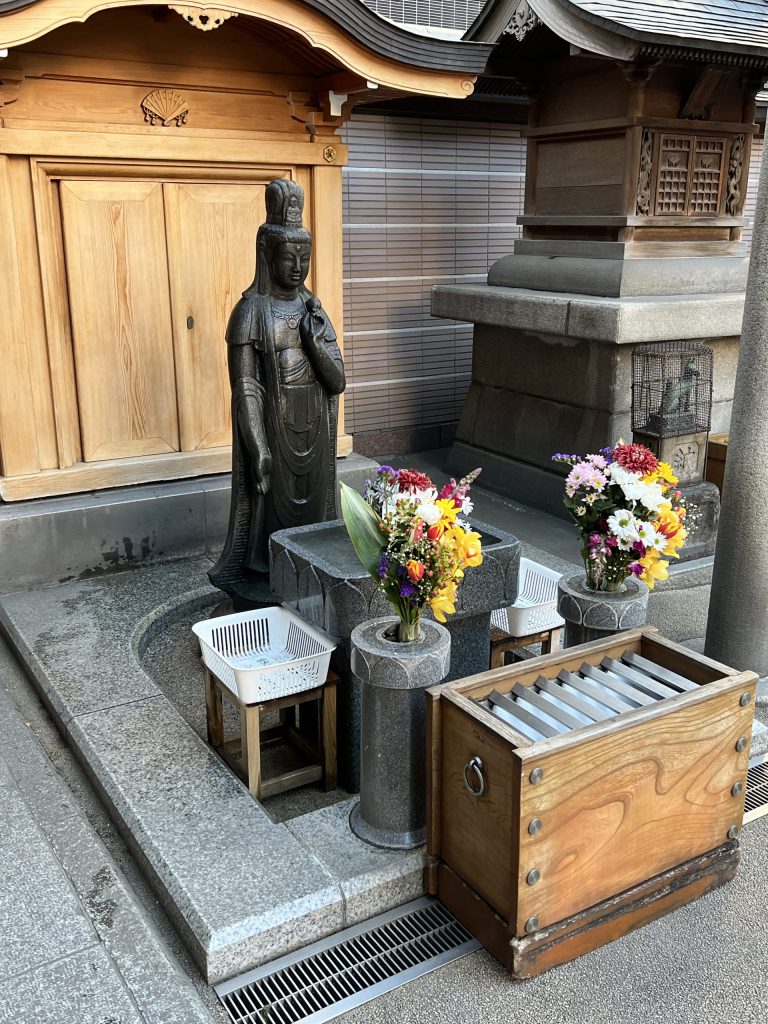石造の聖観音像です。明暦の大火で妻を亡くした檀家の屋根屋喜平次は、