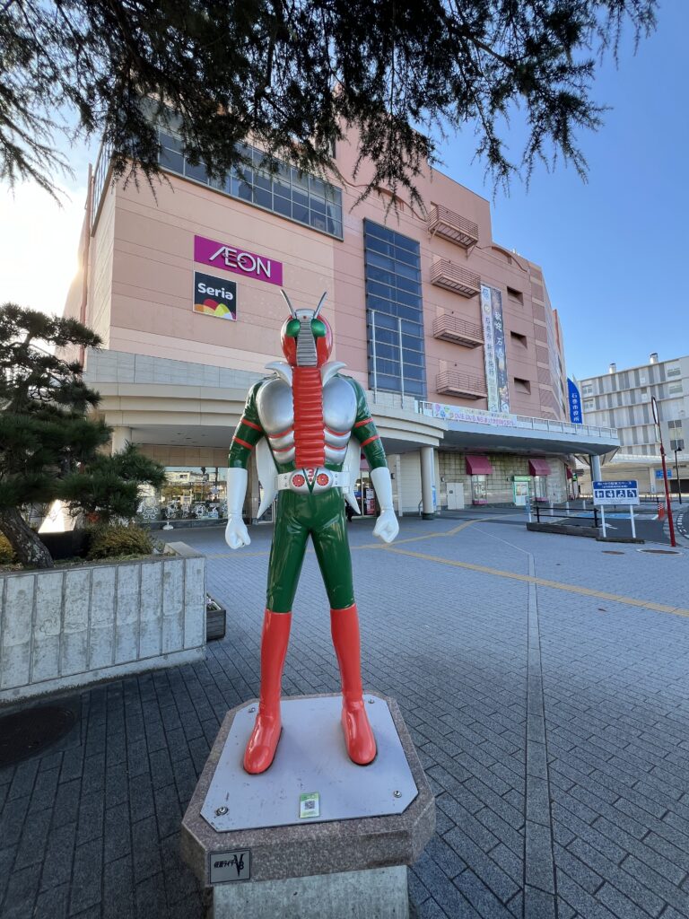 駅前のイオンには「仮面ライダーV3」の像がありました。