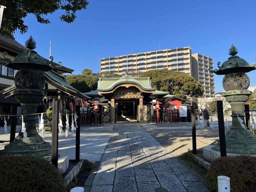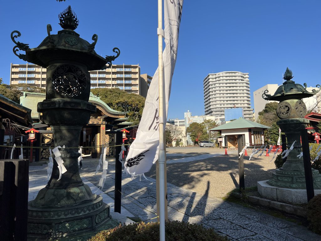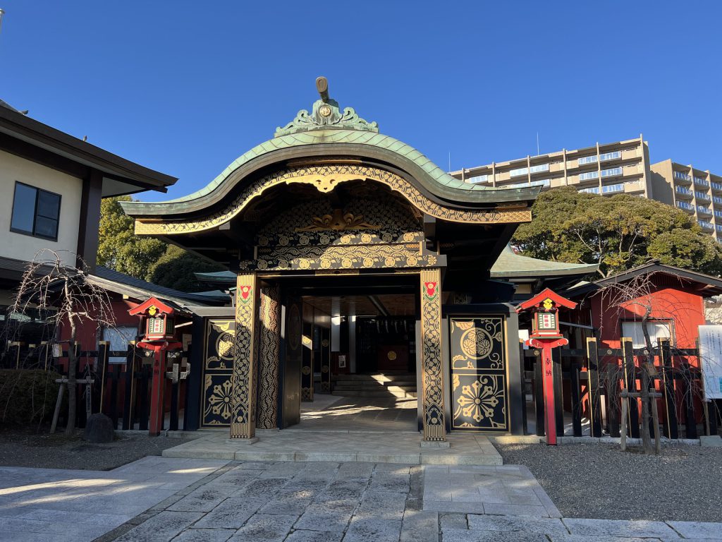 南側の鳥居です。ビルにある葵の御紋が目印となります。