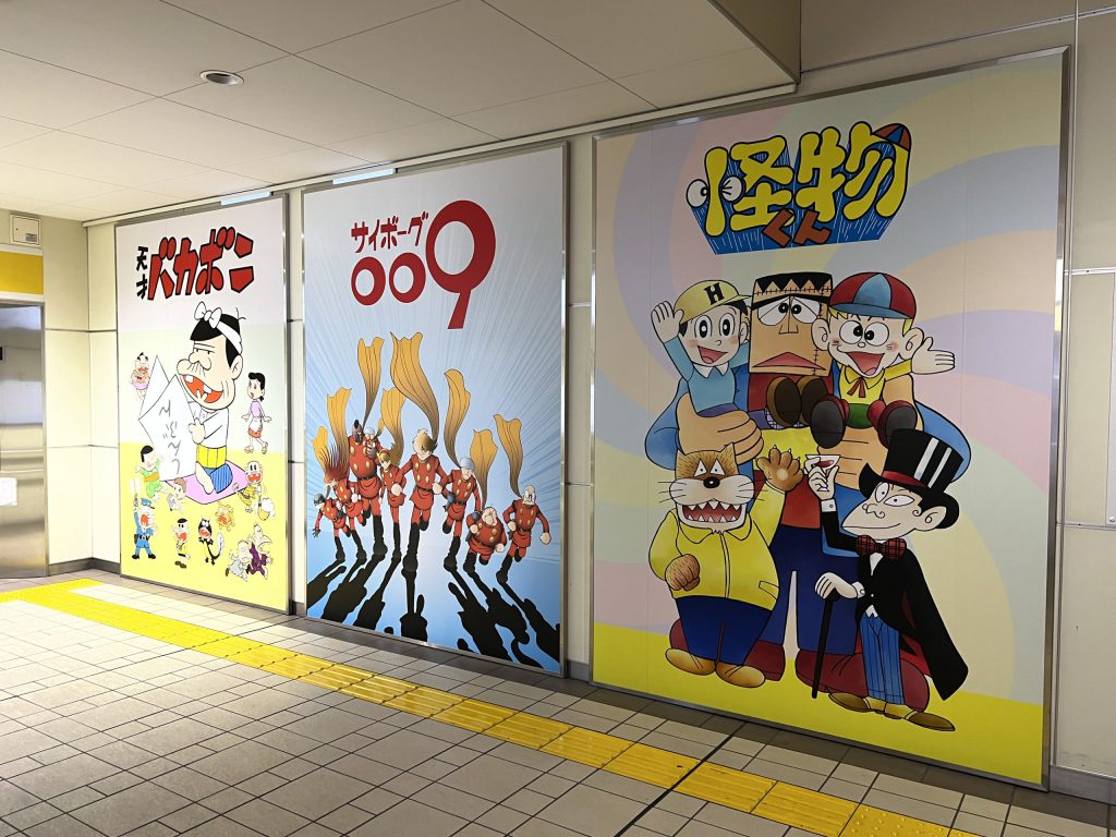 南口エレベーター前には、赤塚不二夫『天才バカボン』
