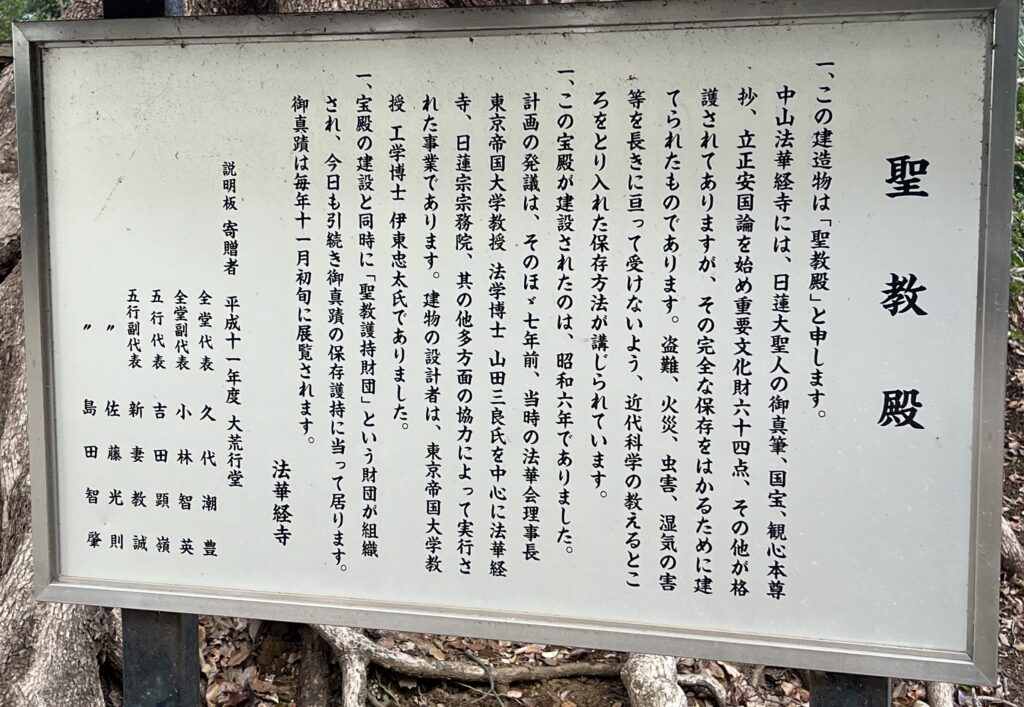 昭和六年に建設された宝殿で、日蓮聖人の御真筆など国宝、重要文化財が保管されています。