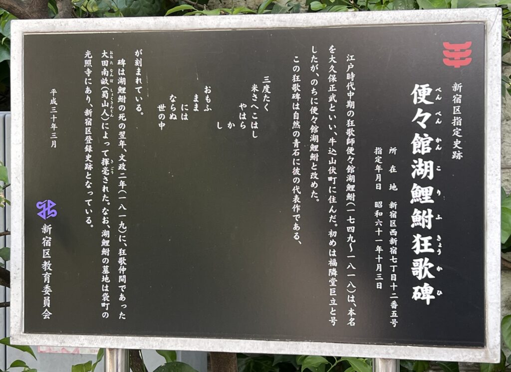 江戸時代中期の狂歌師の便々館湖鯉鮒(べんべんかんこりふ)の碑がありました。