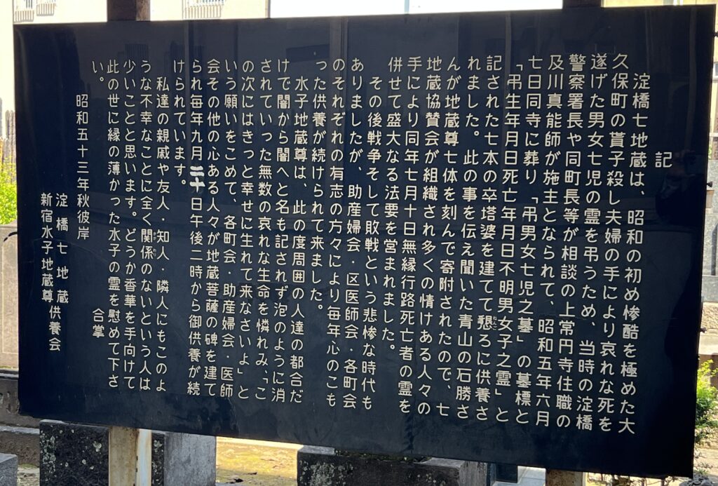淀橋七地蔵は、昭和の初めに事件で亡くなった男女七児の霊を弔うため、