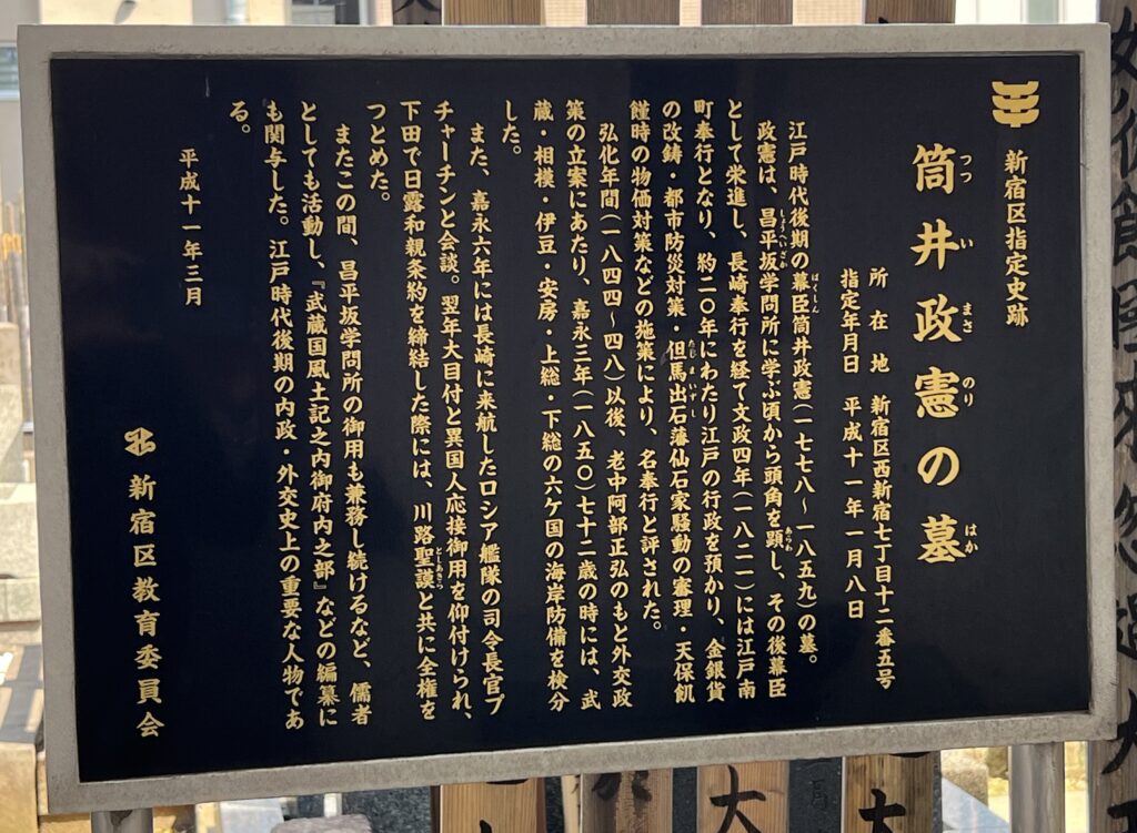 江戸時代後期の幕臣筒井政憲の墓があります。文政四年(1821年)には江戸南町奉行となり、