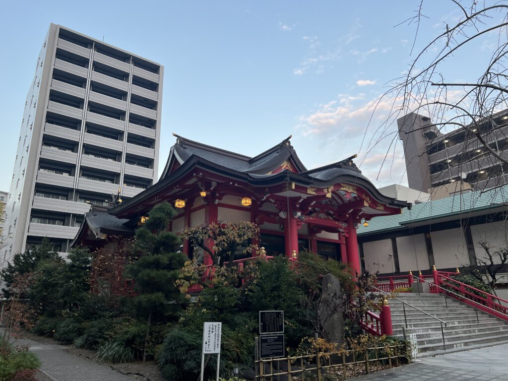 西新宿のビル群の中にあって、きれいな花の咲く落ち着いた境内です。