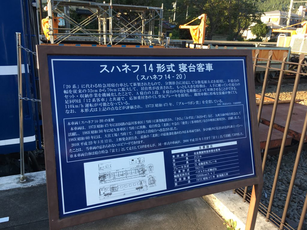 駅の構内にかつての活躍していた寝台特急『富士(ふじ)』が展示されていました。