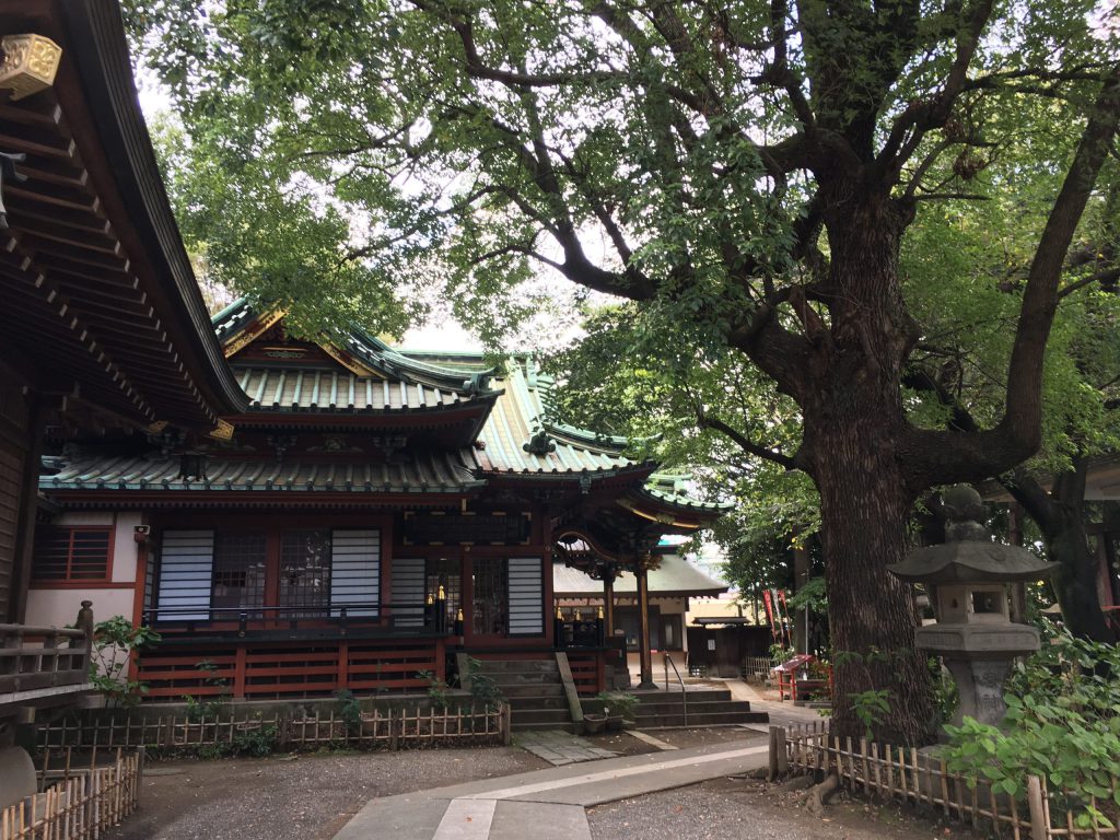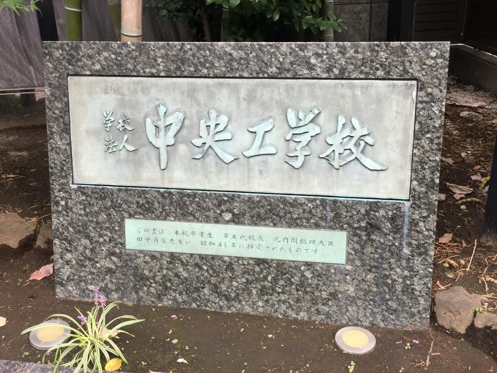 神社近くの中央工学校は田中角栄元首相の出身校で、第五代校長でした。