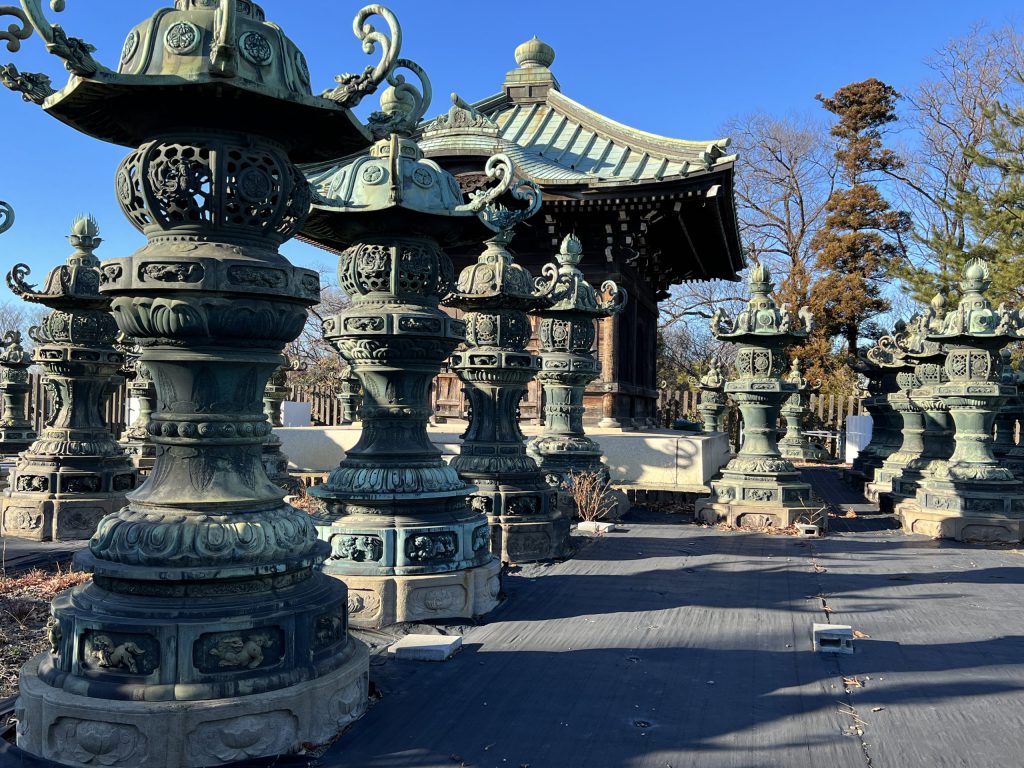 羅漢堂の周囲の唐金燈籠は、増上寺の台徳院霊廟に建てられており、